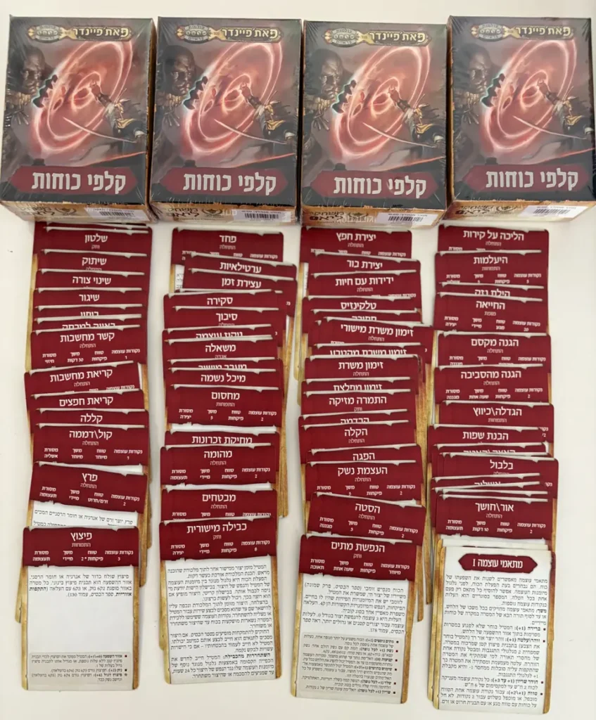קלפי הכוחות מכילים קרוב ל-80 קלפים, עם כל הכוחות מספר הבסיס ומהמדריך המתקדם לשחקן. כל קלף מכיל תמצות של הלחש, המתאמים שניתן להוסיף וגם את הרמה, נקודות הכוח ומידע נוסף. זהו עזר מושלם לכל מטיל לחשים, גם לחבורות שרק מתחילות לשחק וגם לחבורות ותיקות – יותר לא תצטרכו לרשום על נייר את פרטי הלחש או לדפדף בספר.